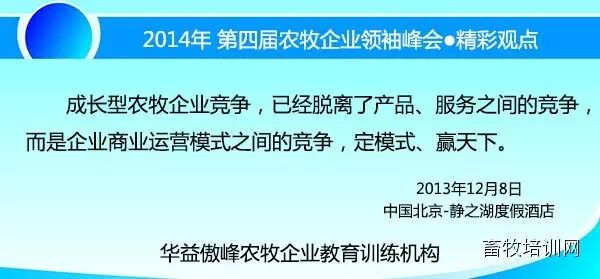 整合营销、体验式营销、直营营销、会议营销、顾问式营销、地毯式营销等等营销运营模式成就了众多农牧企业,在2014《定模式 赢天下》成长型农牧企业商业模式创新领袖峰会上,华益傲峰项目组专家就告诫农牧企业家——