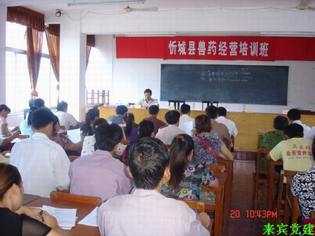 为了规范兽药饲料经营市场,6月20日,忻城县在该县劳动就业服务中心举办兽药经营培训班,共有112名兽药经营者参加这次培训,培训结束后,参训人员通过考试取得了兽药经营资格。图为畜牧师给学员们讲课。(李海春 王兰兴)